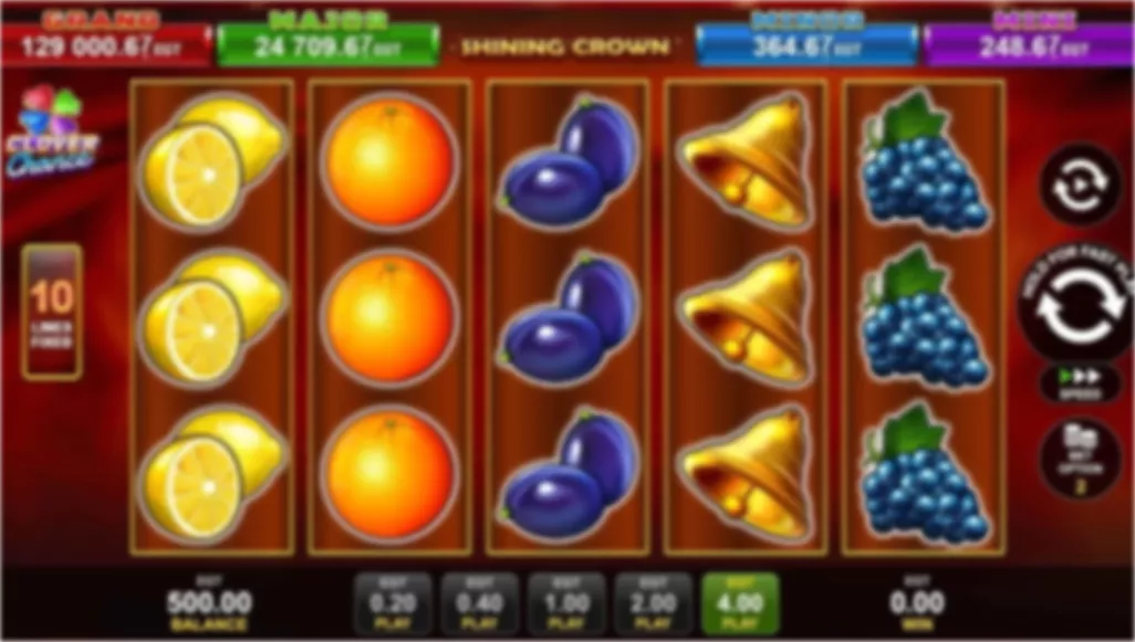Discover all the essential details about Shining Crown by EGT (Amusnet). This section covers the game’s structure, symbols, RTP, volatility, and bonus features, giving you a clear overview before you start playing. Whether you prefer testing the demo or aiming for the progressive jackpot, these specs help you understand how the slot works and what makes it stand out among classic fruit machines.